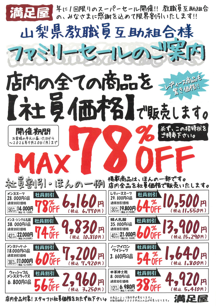 店内の商品全てを「社員価格」で販売します!(MAX78%OFF)