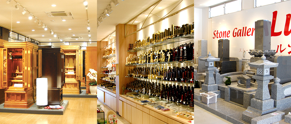 お仏壇やお位牌はもちろんのこと、仏具ひとつから、代々受け継がれたお仏壇のリフォーム、ご先祖様のお墓のことまで。